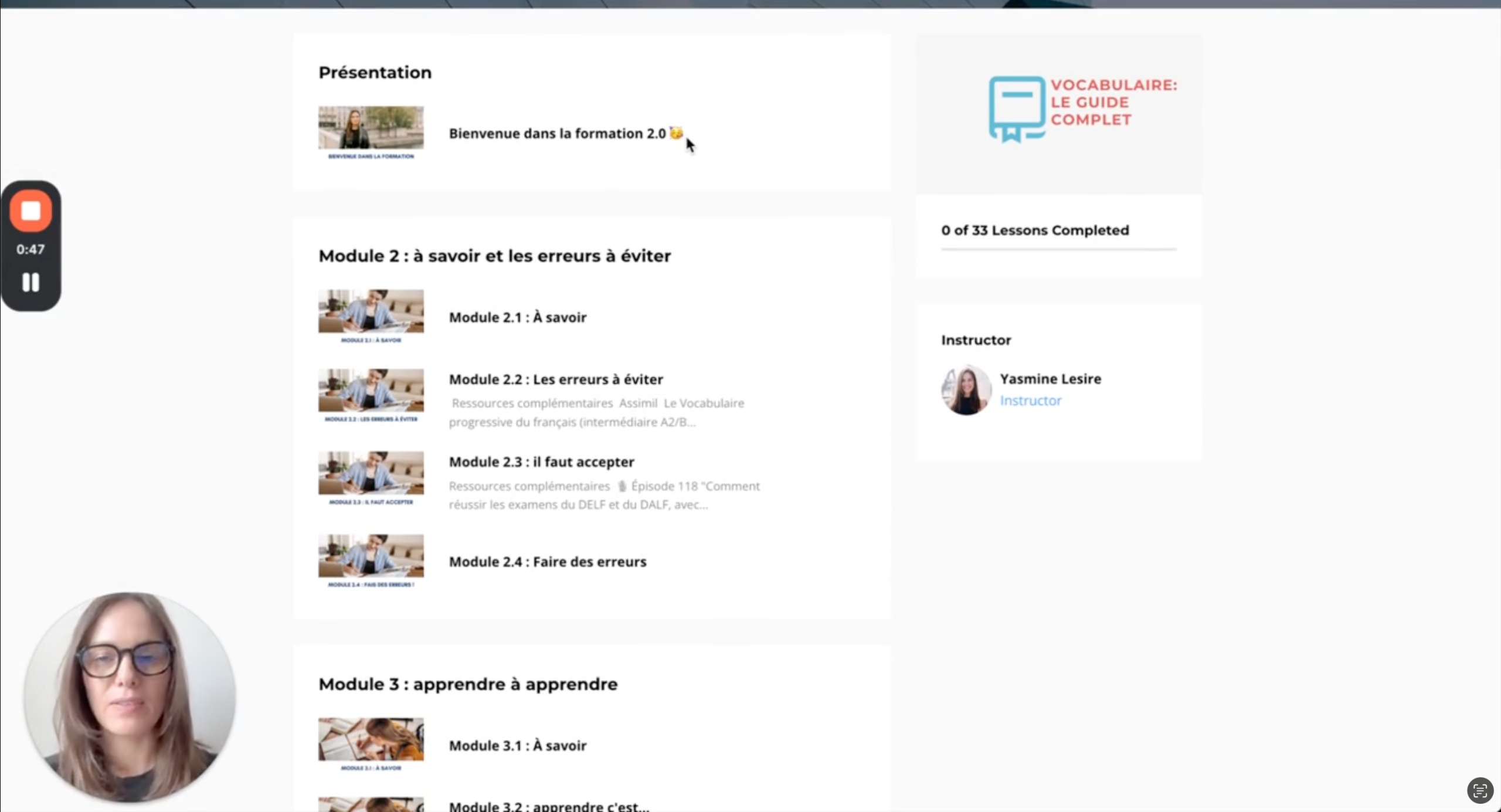 Inside Vocabulaire : le Guide complet, you’ll also unlock six advanced modules: